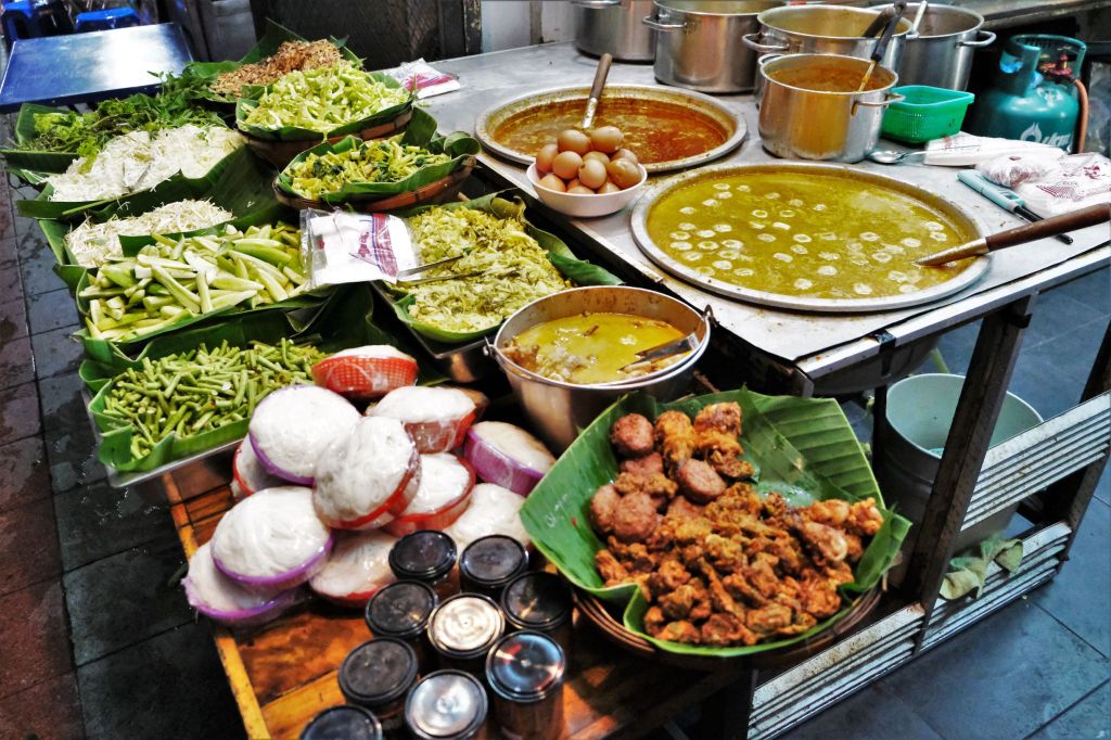 It was set like a street bar table with a few stools, facing a collapsible sliding grille. It was a bit dark and the place seemed abandoned, but all of a sudden a lady with a plastic bowl grabbed one of the chairs and made herself comfortable. She immediately said you have to try the food. I wasn’t listening at first and instead tried to impress her with my knowledge of Thai herbs. Try the noodles she said persistently. Now I was listening and becoming curious. What is it I asked and she replied ‘Kanom Jeen’.