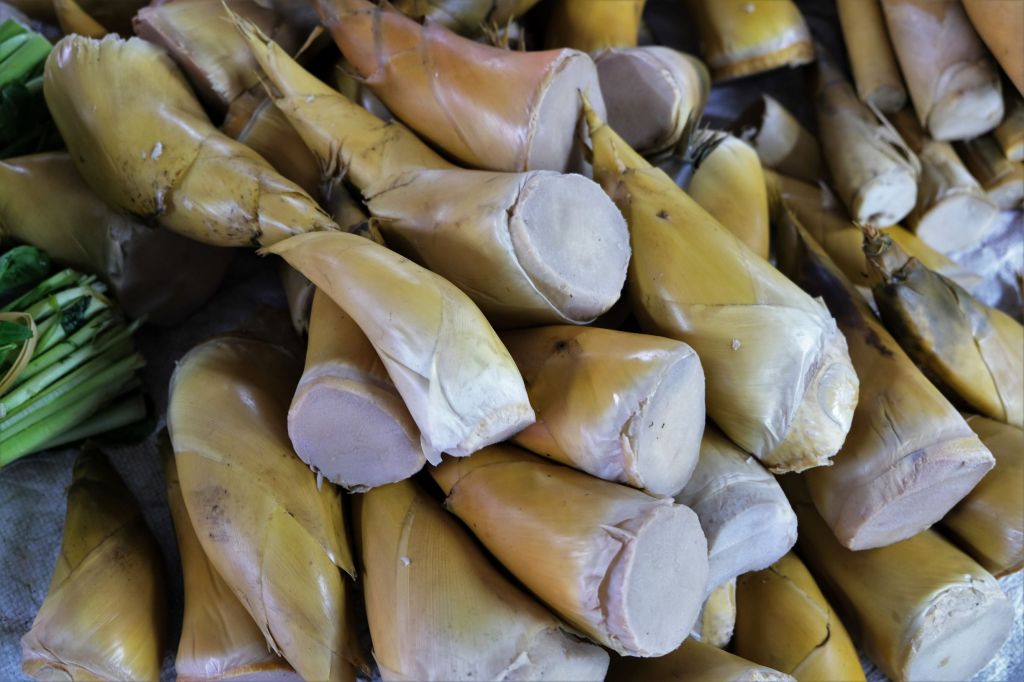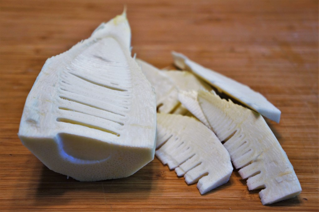 Prepared bamboo shoots are used as a vegetable in variety of dishes including curries, stir-fries, soups and salads and some recipes call for pickled bamboo shoots. Although bamboo shoots are sold canned, I prefer the buy them fresh as they taste better and are in their natural form with no preservatives.
