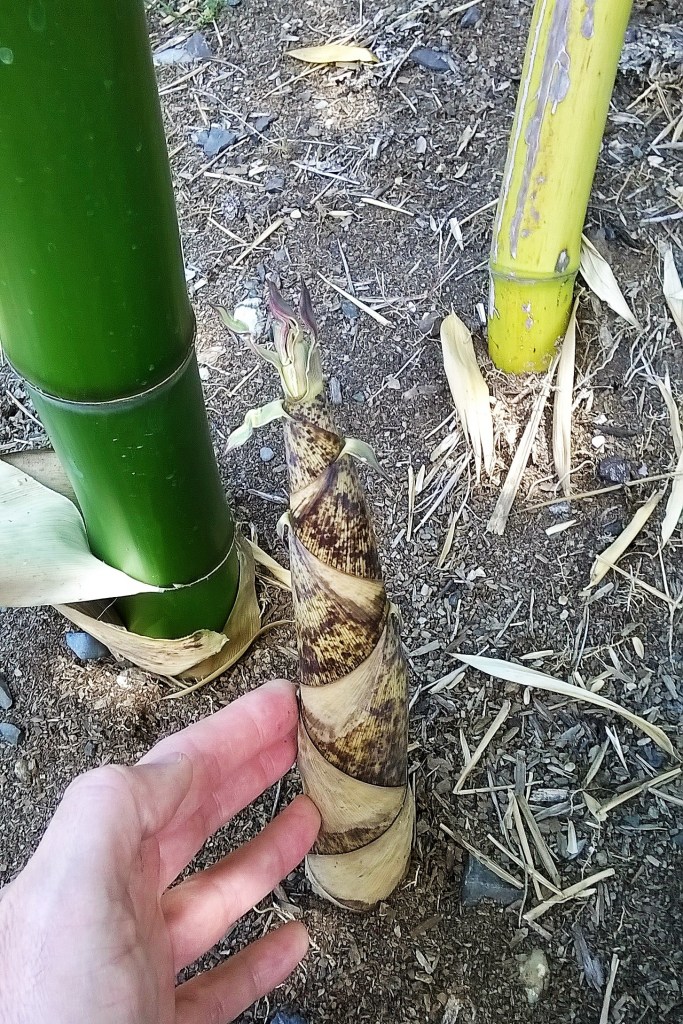 As a food source it is the young bamboo shoots that are eaten. The young shoots need to be picked just as they sprout while the developing stem is still relatively soft, as a few days old shoots would turn woody and inedible. The shoots contain natural toxins that can be lethal, but are destroyed when boiled in water. I boil them for an hour.