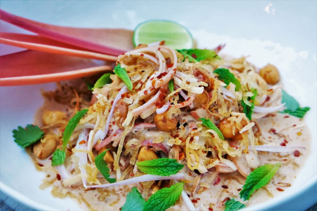 The dressing is rich, comprising of coconut cream, Nam Prik Pao, tamarind puree, a little bit of coconut sugar and light soy sauce.
