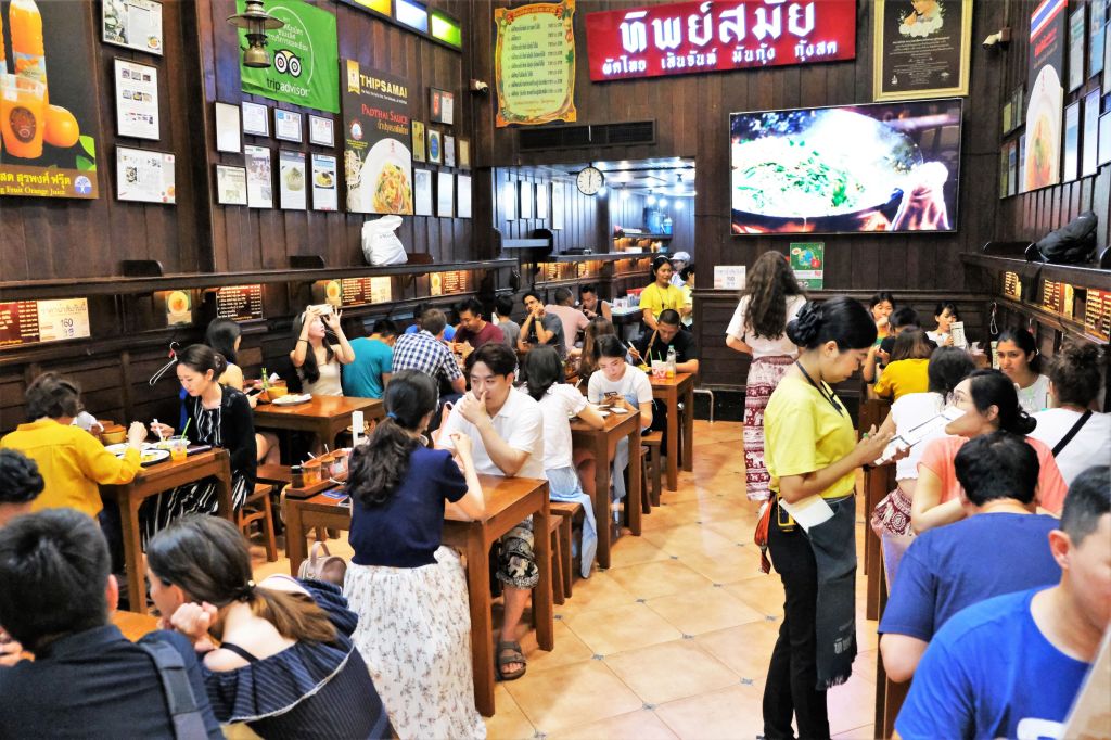 The history of the restaurant goes back to the mid 20th century when a young married couple Ms. Samai and Mr. Chote, had opened the first pad Thai stall in Bangkok. An endorsement from the prime minister Pleak Phibunsongkhram granted a nation wide recognition and led to the establishment of ‘Thipsamai Padthai Pratoopee’ as a restaurant. When the couple got older and couldn’t look after the restaurant it has been sold to the current owner, who has retained the original recipe keeping the restaurant’s reputation of the best pad Thais in the capital and possibly the entire country.