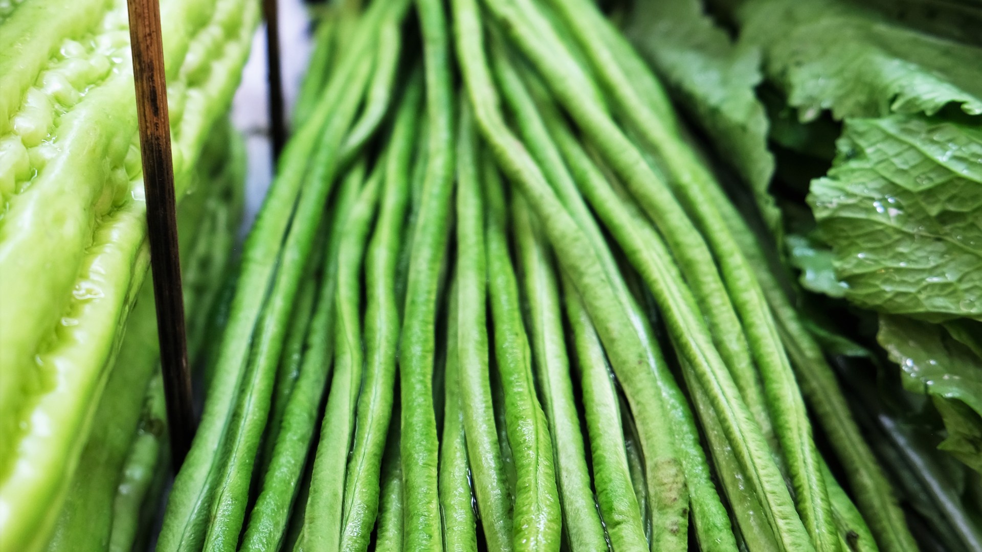 Yardlong bean ‘Thua Fak Yao’ in Thai, is a legume that is widely grown in Southeast Asia. The green pods are the edible part similar to green beans.