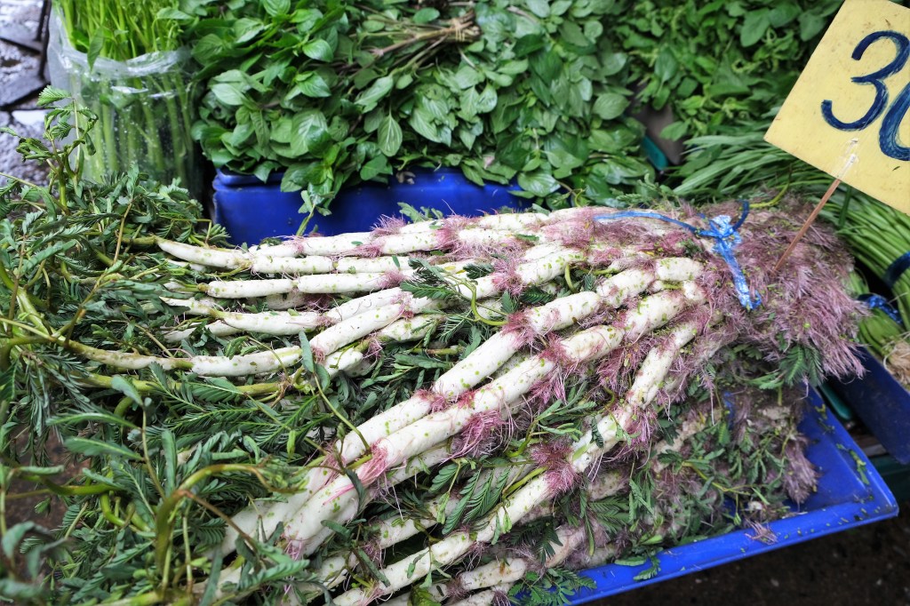 To prepare ‘Pak Krachet’, remove the white tissue and roots and use younger stems and leaves.